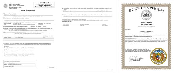 Looking at case results and taking into consideration that the articles of incorporation with the Missouri Secretary of State indicate a date of December 2023. This is suspect.