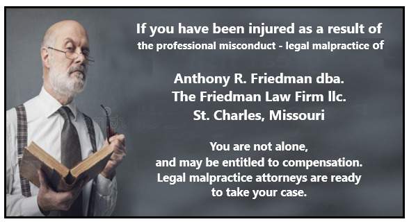 Throughout this website you will soon realize that it is a composite comprising two parts. There are the factual allegations of alleged misconduct of Anthony R. Friedman as well as the resources that an injured party proceeding either with counsel or acting pro se can take advantage of.